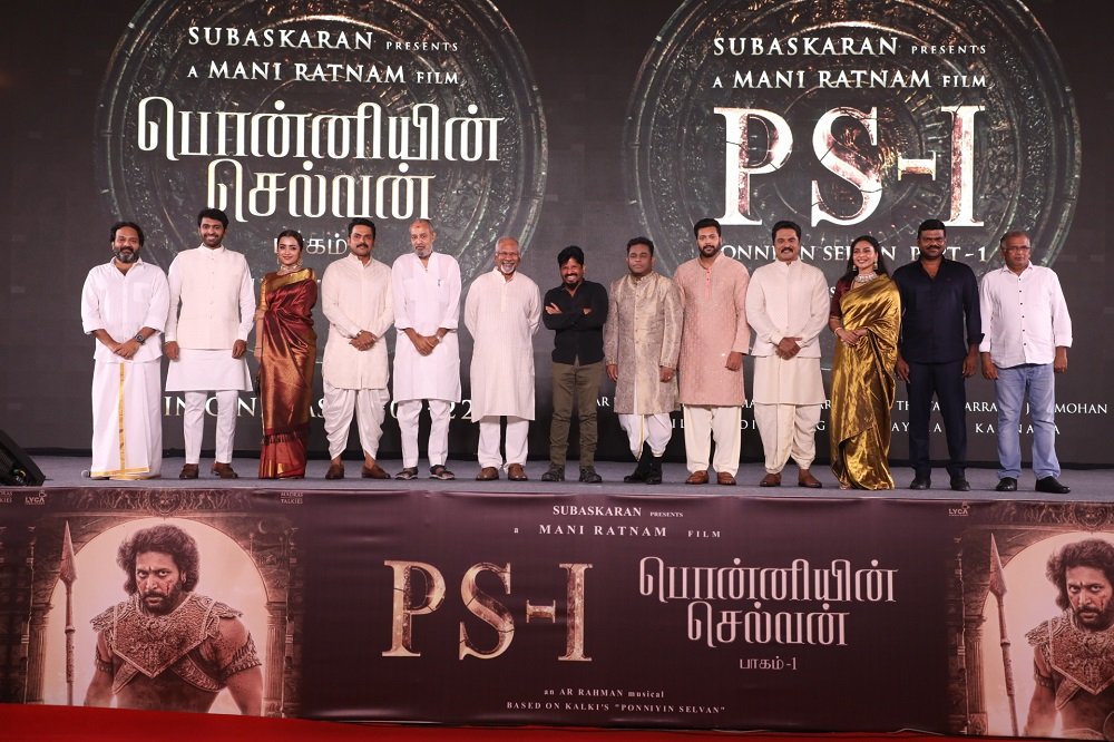 லைகா ப்ரோடக்ஷன்ஸ் மற்றும் மெட்ராஸ் டாக்கீஸ் இணைந்து தயாரித்து, இயக்குனர் மணிரத்னம் இயக்கி, பல முன்னணி நட்சத்திரங்கள் நடித்த ‘பொன்னியின் செல்வன்’ படத்தின் டீசர் வெளியீட்டு விழா சென்னையில் நடந்தது. விழாவில் மணிரத்னம் உள்ளிட்ட படக்குழுவினர் கலந்து கொண்டனர்.