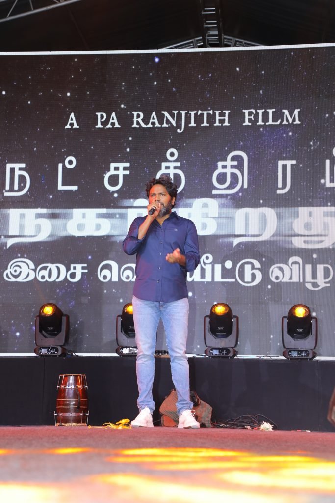 ரஞ்சித் தனக்கு இருக்கும் நட்புக்களை ஒன்று சேர்த்து பயணிப்பவர். கபாலியில் பயணிக்கும்போது அவரது எண்ணங்களை பகிர்ந்து கொள்வார். அவருக்கு எப்போதும் நான் துணை நிற்பேன். பரியேறும் பெருமாள் படத்திற்கு தியேட்டர் கிடைக்காத போது அவருக்கு தெரியாமலேயே தியேட்டர் கிடைக்க ஏற்பாடு செய்தேன். அவரது பாணியில் இருந்து விலகி, ஹைஃபையாக நட்சத்திரம் நகர்கிறது செய்து கொண்டிருக்கிறார். உண்மையில் இந்த படைப்பு அடித்தட்டு மக்களின் கதையை சொல்லும். தம்பிக்கு எனது வாழ்த்துக்கள்.