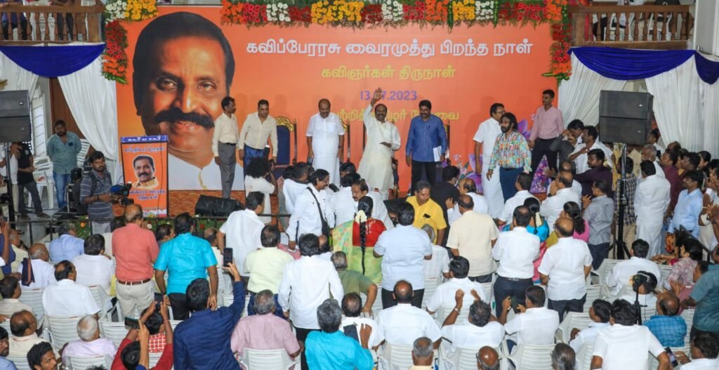 கவிஞர் வைரமுத்துவின் பிறந்தநாளை வெற்றித் தமிழர் பேரவை ஆண்டுதோறும் கவிஞர்கள் திருநாளாகக் கொண்டாடி வருகிறது. இந்த ஆண்டு கவிஞர் வைரமுத்துவின் 70-வது பிறந்தநாள் இன்று காலை 9 மணிக்குச் சென்னை கோடம்பாக்கம் டிரஸ்ட்புரத்தில் உள்ள பொன்மணி மாளிகை திருமண மண்டபத்தில் கொண்டாடப்பட்டது. ஒன்றிய முன்னாள் அமைச்சர் ஜெகத்ரட்சகன், நாடாளுமன்ற முன்னாள் உறுப்பினர் கம்பம் பெ.செல்வேந்திரன் இருவரும் வாழ்த்துரை வழங்கினார்கள்.