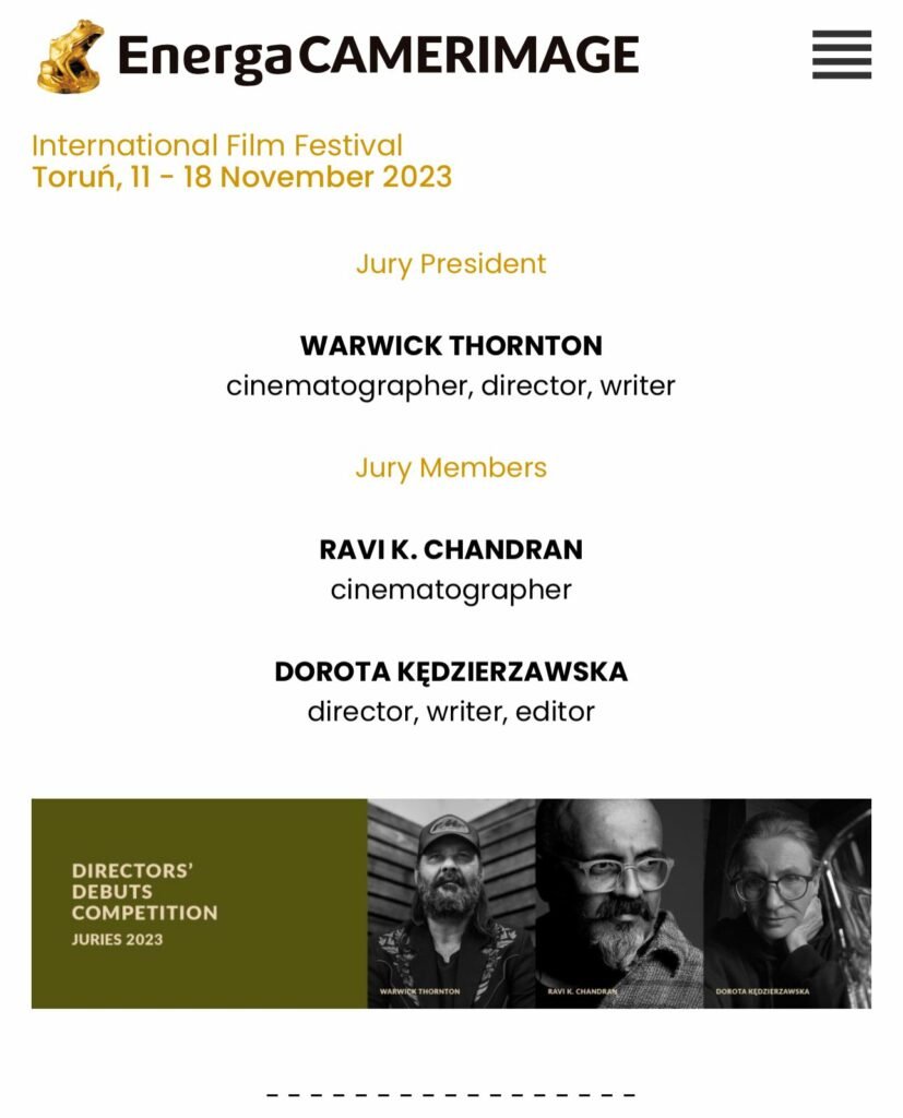 போலந்தில் நடைபெறும் இவ்விழாவின் 31வது பதிப்பில் ரவி கே சந்திரன் ஜூரியாக பங்காற்றுவார்.
