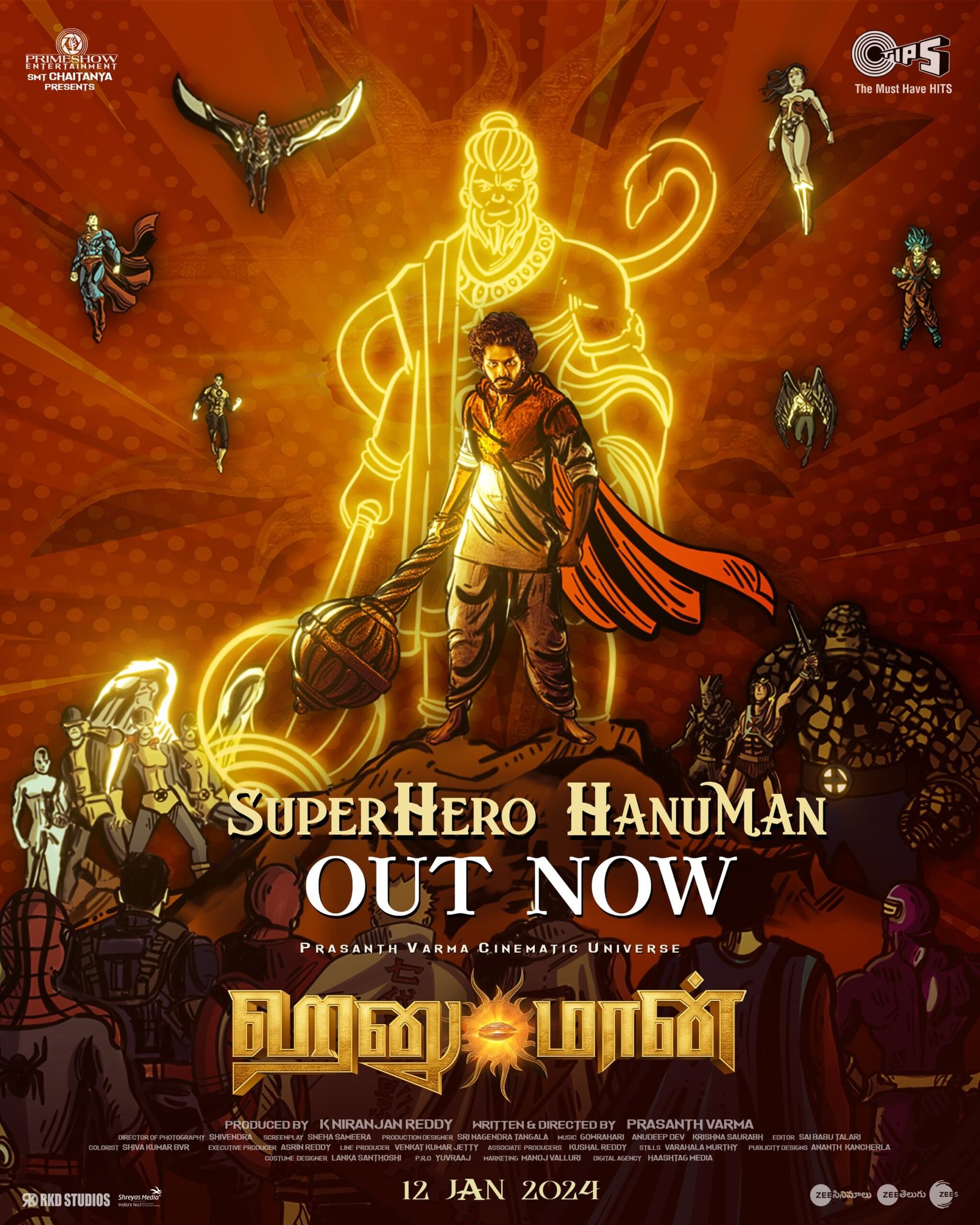 HANU-MAN will have a Pan World release in several Indian languages including Telugu, Hindi, Marathi, Tamil, Kannada, Malayalam, English, Spanish, Korean, Chinese and Japanese on January 12, 2024.