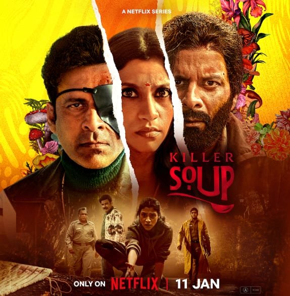 சேட்டனா கௌஷிக் மற்றும் ஹனி ட்ரெஹான் தயாரித்துள்ளனர். வரும் ஜனவரி 11ஆம் தேதி நெட்ஃப்ளிக்ஸ் – இல் வெளியாகிறது. இதில் மனோஜ் பாஜ்பாய், கொங்கோனா சென்ஷர்மா, நாசர், சாயாஜி ஷிண்டே, லால், அன்புதாசன், அனுலா நவ்லேகர் மற்றும் கனி குஸ்ருதி ஆகியோர் முக்கிய வேடங்களில் நடிக்கின்றனர். நடிகர் மனோஜ் பாஜ்பாய் கூறுகையில், ” எனது கேரியரில் முதல்முறையாக இரட்டை வேடத்தில் நடிக்கிறேன். இரு காதாபாத்திரத்திலும் முற்றிலும் மாறுபட்டு நடிக்கிறேன். இயக்குனர் அபிஷேக் சௌபேயின் திறமையும், நெட்ஃப்ளிக்ஸ் நிறுவனத்தின் கூட்டணியும், கதையில் உள்ள ஒவ்வொரு கதாபாத்திரங்களிலும் உயிர் கொடுத்த நடித்த நடிகர்களையும் நான் நம்பினேன். கில்லர் சூப் ஒரு கிரைம் திரில்லர் ஆகும், பல்வேறு சாரம்சங்கள் கொண்ட இந்த சூப் அனைவரும் விரும்பி சுவைக்க கூடியதாகும்”.