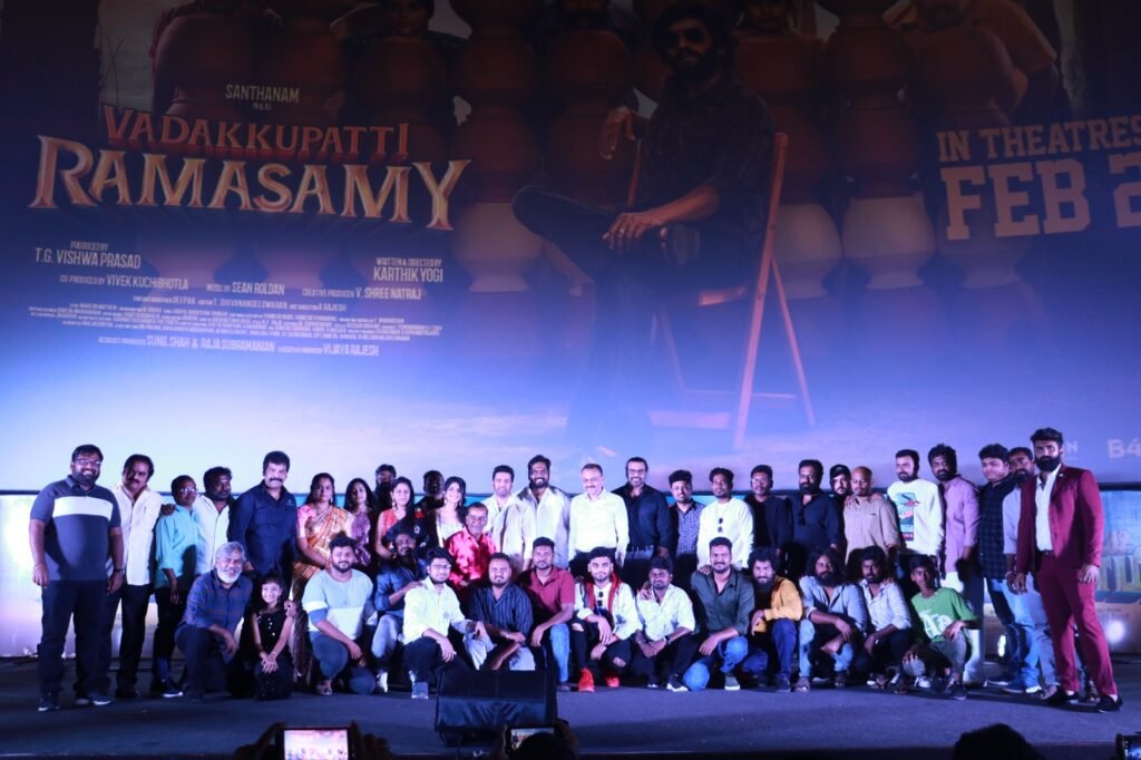 பீப்பிள் மீடியா ஃபேக்டரி, விஸ்வ பிரசாத் தயாரிப்பில் கார்த்திக் யோகி இயக்கத்தில் நடிகர்கள் சந்தானம், மேகா ஆகாஷ் நடித்துள்ளத் திரைப்படம் ‘வடக்குப்பட்டி ராமசாமி’. பிப்ரவரி 2ஆம் தேதி வெளியாக இருக்கும் இந்தப் படத்தின் இசை வெளியீட்டு விழா நடைபெற்றது.