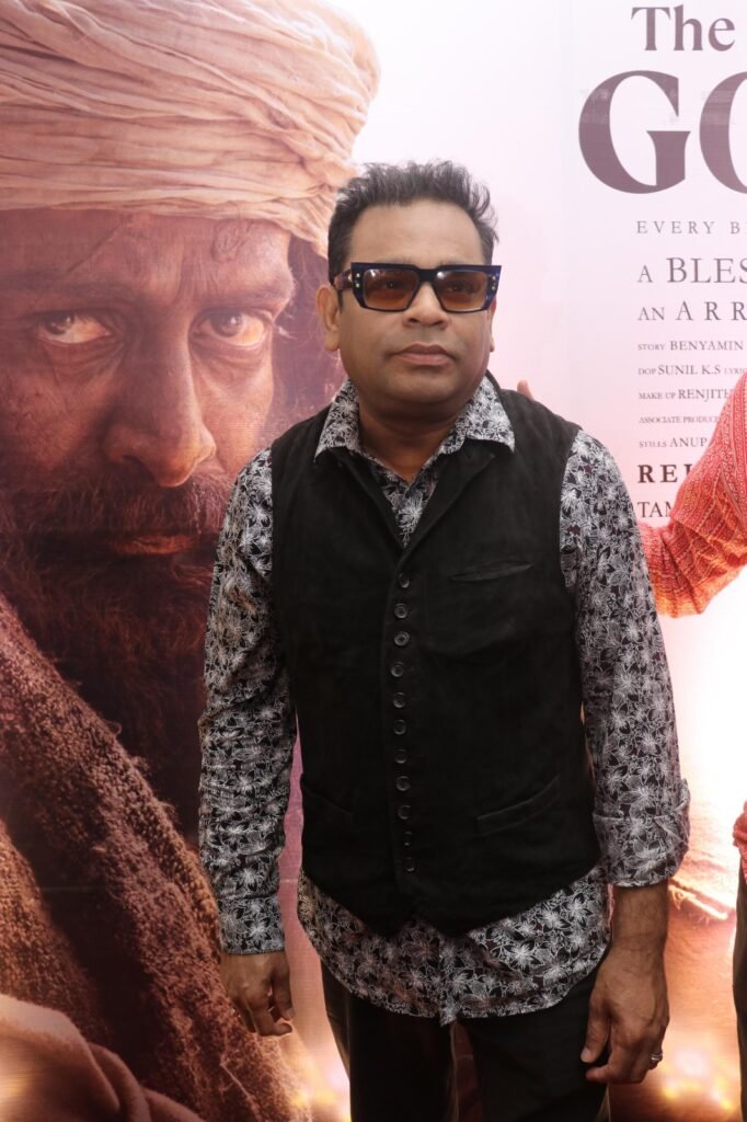 இசையமைப்பாளர் ரஹ்மான், “இந்தப் படம் ஒத்துக்கொள்ளும் பொழுது சீக்கிரம் முடிந்து விடும் என்று நினைத்தேன். ஆனால், ஆறு வருடங்கள் ஆகிவிட்டது. இந்த படத்தில் வேற லெவல் நடிகராக பிருத்விராஜ் உள்ளார். பிளெஸ்ஸி சிறப்பான இயக்கத்தை கொடுத்துள்ளார். சிலர் என்னிடம் கேட்டார்கள். ‘இந்த படம் ‘மரியான்’ போல இருக்குமா என்று!’. ‘மரியான்’ ஃபிக்ஷன். ஆனால் இது உண்மையான கதை. இந்த படத்தின் கதையான ‘ஆடுஜீவிதம்’ புத்தகம் பல லட்சம் பிரதிகள் விற்பனையாகி இருக்கிறது. அப்படி என்றால் அதில் ஏதோ ஒன்று இருக்கிறது என்று அர்த்தம். அது என்னவென்று நீங்கள் படம் பார்த்து கண்டுபிடித்து சொல்லுங்கள்”.