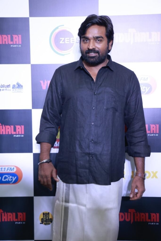 நடிகர் விஜய்சேதுபதி, “சூரி மாதிரியான பெரிய ஹீரோ அவரது படத்தில் எனக்கு பெரிய வாய்ப்பு கொடுத்திருக்கிறார். அற்புதமாக நடித்திருக்கிறார். கென் கருணாஸூக்கு மிகப்பெரிய எதிர்காலம் இருக்கிறது. சேத்தன் சாரின் நடிப்பு என்னை பிரமிக்க வைக்கிறது. அந்த கதாபாத்திரத்திற்கு மிகச்சரியான தேர்வு அவர். அவரைத் தவிர வேறு யாரையும் ரீபிளேஸ் செய்ய முடியாது. ஜாக்கி சாரின் செட் காலத்தைக் கடந்து எங்களை கூட்டி சென்று அந்த காலத்தில் வாழ்ந்த அனுபவத்தைக் கொடுத்தது. பவானி, தமிழ் சார் அனைவருக்கும் வாழ்த்துகள். உணர்வுகளை இசையாக மாற்றுபவர் ராஜா சார். அவரின் இசை மூலம் எனக்கு பேரானந்தம் கொடுத்த ராஜா சாருக்கு நன்றி. அவரது பேச்சும் வாழ்க்கையில் பல புரிதல்களை எனக்குக் கொடுத்தது. இது முழுக்க முழுக்க வெற்றிமாறன் மட்டுமே உரிமை கொண்டாடக்கூடிய படம். இந்தப் படம் உருவாக நாங்கள் உறுதுணையாக இருந்தோம். ஒருநாள் கூட அவர் சோர்ந்து போய் நாங்கள் பார்த்ததே கிடையாது. தயாரிப்பாளர் எல்ரெட் சார் இந்தப் படத்தைக் கிரீடமாக சுமந்து கொண்டிருக்கிறார். எல்லோருக்கும் நன்றி”