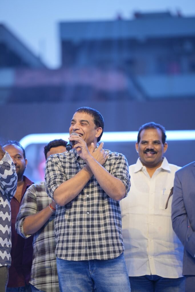 தில் ராஜு மேலும் கூறுகையில், குளோபல் ஸ்டார் ரசிகர்களுக்கு இந்த சங்கராந்தி பிரமாண்டமான விருந்தாக இருக்கும் என்றார். “நான்கு வருடங்களுக்கு முன்பு ஷங்கர் சார் என்னிடம் கதை சொன்னபோது, நான் உணர்ந்ததைத்தான் இன்று படத்தைப் பார்த்த சிரஞ்சீவியும் உணர்ந்தார். ஐஏஎஸ் அதிகாரியாக, போலீஸ் அதிகாரியாக இரட்டை வேடத்தில் ராம்சரணின் முழுத்திறமையை, அதிரடி நடிப்பை நீங்கள் பார்க்கலாம். ஷங்கரின் பாடல்களை நீங்கள் கொண்டாடுவீர்கள், 10 முதல் 12 நாட்கள் வரை அவர் பாடல்களைப் படமாக்குவார், அதே போல் படமும் 2 மணி நேரம் 45 நிமிடம் தாருங்கள் என்றேன், சொன்ன நேரத்தில் கமர்ஷியல் ரீதியிலான அனைத்து அம்சங்களையும் உள்ளடக்கி, ஒரு அற்புதமான ப்ளாக்பஸ்டர் படத்தைத் தந்துள்ளார்.”