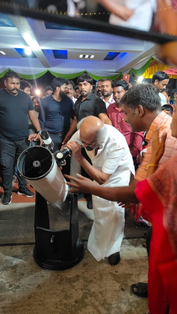 விண்வெளி அறிவியல் கண்காட்சியை ஆஷ்ரம் பள்ளி வளாகத்தில் ரஜினிகாந்த் – லதா ரஜினிகாந்த் பார்த்தார்கள்.!