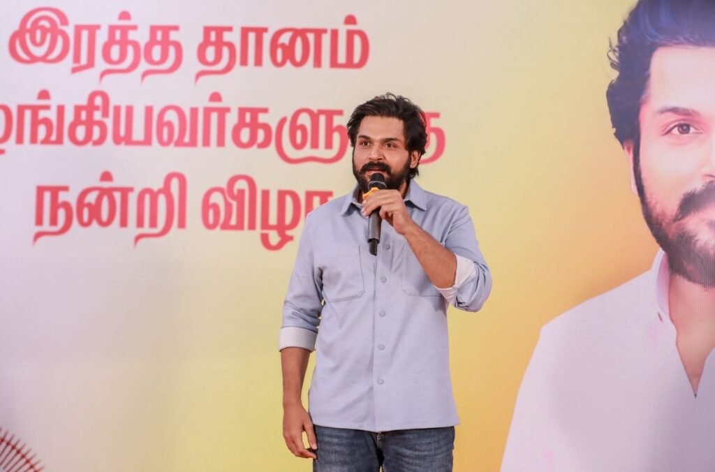 அந்த வகையில் கடந்த மே 25 ஆம் தேதி நடிகர் கார்த்தி தனது 48வது பிறந்தநாளை கொண்டாடினார். இவரது பிறந்தநாளை முன்னிட்டு தமிழகம் முழுக்க ரசிகர்கள் பல்வேறு அரசு மருத்துவமனையில் இரத்த தானம் செய்தார்கள். சென்னையில் உள்ள ரசிகர்கள் ராஜீவ் காந்தி அரசு மருத்துவமனையில் இரத்த தானம் செய்தார்கள். இவ்வாறு இரத்த தானம் செய்தவர்களில் 250 ரசிகர்களை நடிகர் கார்த்தி ஞாற்றுக்கிழமை அன்று நேரில் சந்தித்தார்.