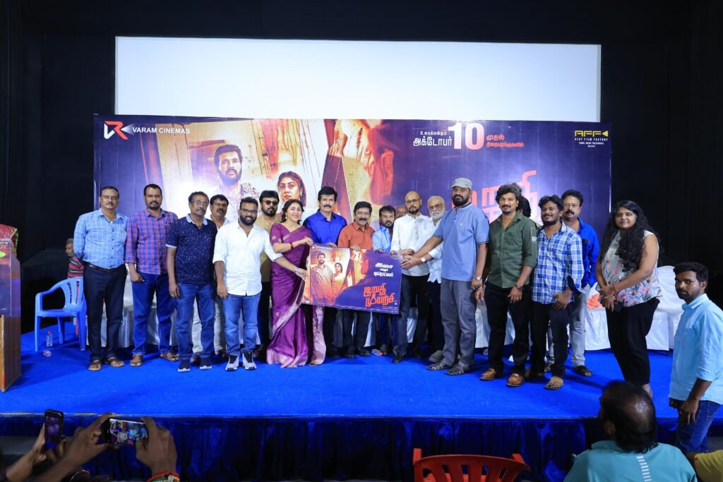 வரம் சினிமாஸ் நிறுவனம் சார்பில் தயாரிப்பாளர் வெங்கடேசன் பழனிச்சாமி தயாரிப்பில் நடிகர் ரஞ்சித் நடிப்பில் இயக்குநர் வெங்கட் ஜனா இயக்கத்தில் உருவாகியுள்ள ‘இறுதி முயற்சி’ எனும் திரைப்படத்தின் இசை வெளியீட்டு விழா சென்னையில் சிறப்பாக நடைபெற்றது. இந்நிகழ்வில் இயக்குநர்கள் ஆர். வி. உதயகுமார் – பேரரசு ஆகியோர் சிறப்பு விருந்தினர்களாக கலந்து கொண்டனர்.