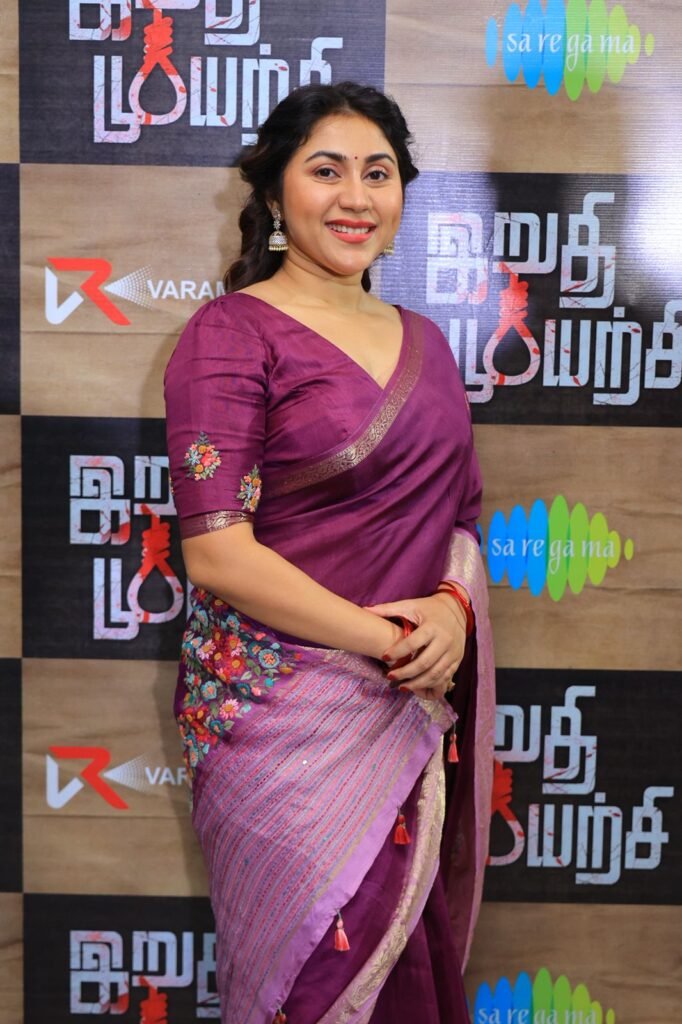 நடிகை மேகாலீ பேசுகையில், ” நவராத்திரி திருவிழா நடைபெற்றுக் கொண்டிருக்கும் தருணத்தில் அனைவரையும் சந்திப்பதில் மகிழ்ச்சி அடைகிறேன். இறுதி முயற்சி இது ஒரு கூட்டு முயற்சி. இந்தப் படத்தில் பணியாற்றிய அனுபவம் அழகானது. மறக்க முடியாதது. படப்பிடிப்பு தளத்தில் அனைவரும் தங்களது முழுமையான ஒத்துழைப்பை அளித்தார்கள். இந்த கதாபாத்திரத்தை என்னை நம்பி வாய்ப்பளித்த இயக்குநருக்கு நன்றி. சக நடிகரான ரஞ்சித் படப்பிடிப்பு தளத்தில் அக்கறையுடனும், அன்புடனும் நடந்து கொண்டார். அக்டோபர் 10ஆம் தேதியன்று ‘இறுதி முயற்சி’ திரையரங்குகளில் வெளியாகிறது. அனைவரும் திரையரங்கத்திற்கு வருகை தந்து ஆதரிக்க வேண்டும்” என்றார்.