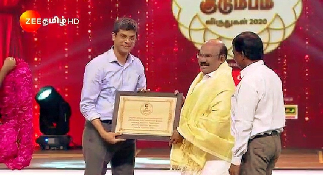 இந்த விழாவில் அமைச்சருக்கு சிறப்பு விருது வழங்கி கௌரவித்துள்ளது ஜீ தமிழ். கொரோனா காலகட்டத்தில் ஒரு நாள் கூட ஓய்வில்லாமல் தினமும் மக்களோடு பயணித்து அவர்களின் குறைகளைக் கேட்டறிந்து கொரோனா தடுப்பு நடவடிக்கைகளை முன்னெடுத்து செல்வதில் பொது மக்களுக்கு உதவுவதில் பெரும் ஆர்வம் காட்டி வந்தவர் அமைச்சர் ஜெயக்குமார்.