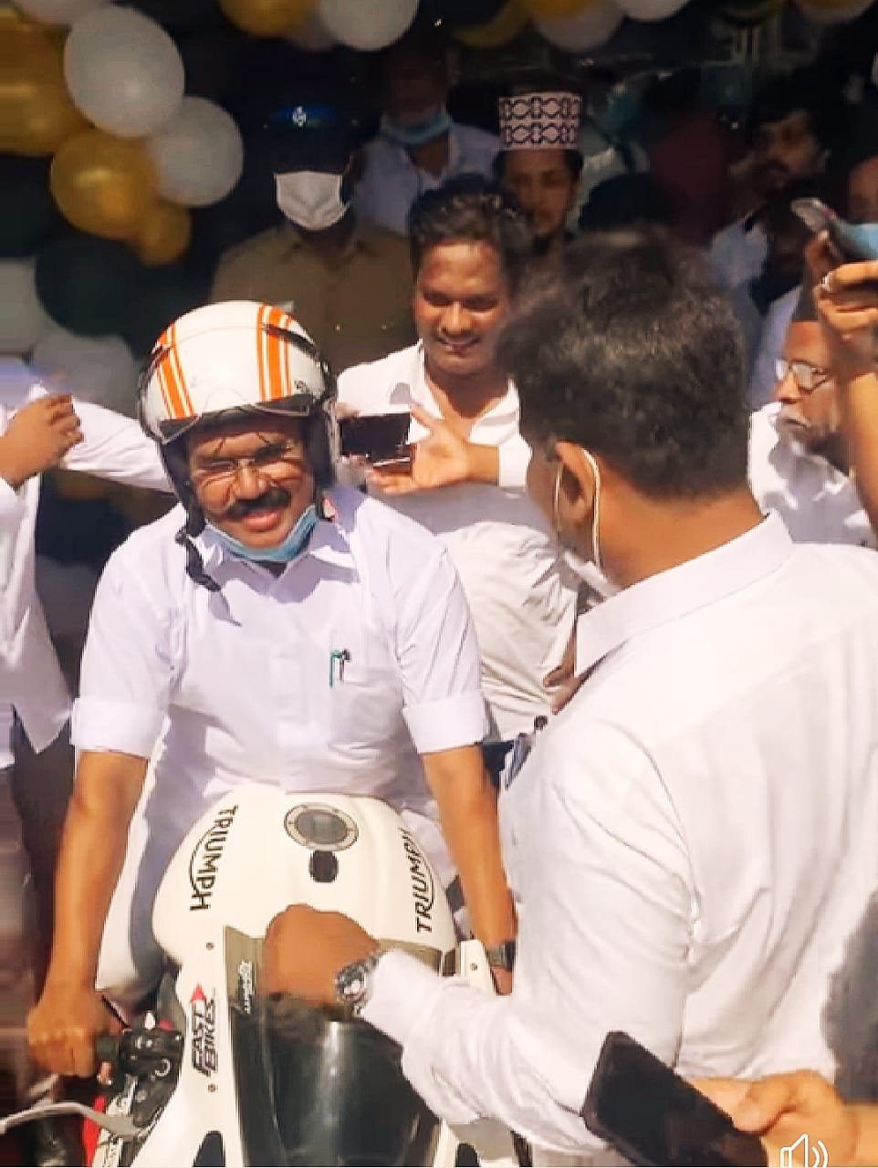 இன்னைக்கு தனியார் ஹெல்மெட் கடை திறப்பு விழா நிகழ்ச்சியில் கலந்துகிட்டேன்.எனவே இளைஞர்களுக்கு ஒரு விழிப்புணர்வை கொடுப்பதற்காகத்தான் நான் ஹெல்மெட் போட்டு பைக்கில் சில கிலோமீட்டர் வலம் வருகிறேன் என்றார். இன்று ஒரு நாள் மட்டுமல்ல நேரம் கிடைக்கும் போதெல்லாம் இதேபோல ஹெல்மெட் அணிந்துகொண்டு மக்கள் மத்தியில் விழிப்புணர்வை உருவாக்க முடிவெடுத்திருக்கிறேன்” என்றார்.அவரது பதிலை கேட்டு அங்கு இருந்தவர்கள் அமைச்சருக்கு மகிழ்ச்சியுடன் வாழ்த்து தெரிவித்தனர்.